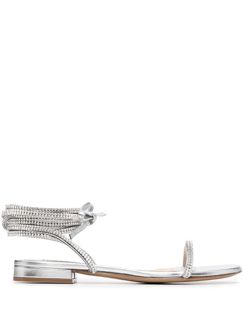 Description Amina crystal-embellished leather sandals Highlights ['* crystal embellishment', '* tie-fastening ankle strap', '* open toe', '* slip-on style', '* branded leather insole and low heel.'] Made in Italy Composition OUTER: Leather 100% LINING: Leather 100% SOLE: Leather 100% Model Measurement HEEL 2.0(cm)