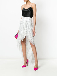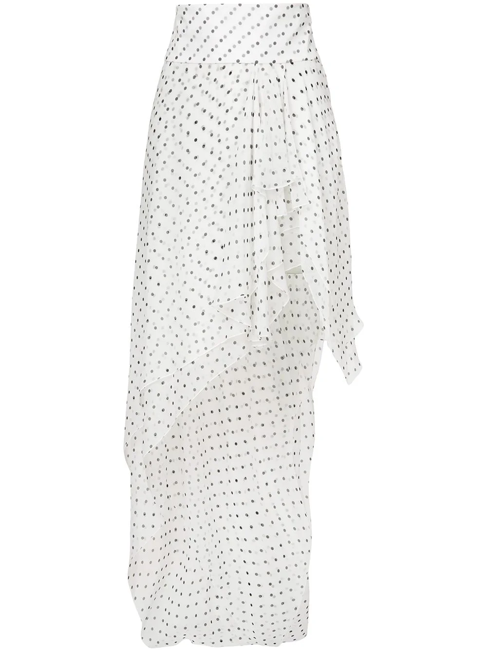 asymmetric spotted ruffled skirt White silk asymmetric spotted ruffled skirt from Alexandre Vauthier. Imported Composition Silk 100% SIZE & FIT Model measurements Height 5 ft 10 in(1.78 m) Bust/Chest 33.07 in(84 cm) Hips 36.61 in(93 cm) Waist 24.8 in(63 cm) Washing instructions Dry Clean Only