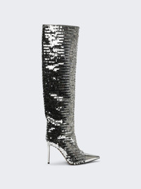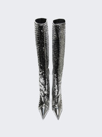 Clem Sequinned Knee-high Boots Argento