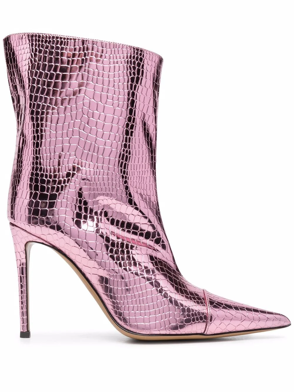 crocodile-effect 105mm ankle boots hot pink leather crocodile effect pointed toe slip-on style branded insole high heel Made in Italy Composition Other fibres 100% SIZE & FIT Measurement CIRCUMFERENCE 11.81 in(30 cm) HEEL 4.13 in(10.5 cm) HEIGHT 6.29 in(16 cm) Sole height 0.39 in(1 cm)