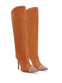 crystal-embellished 105mm boots Highlights - Cognac brown - Faux suede - Crystal embellishment - Pointed toe - High stiletto heel - Leather outsole - Leather lining - Knee-high Made in Italy Composition Outer: Leather 100% Lining: Leather 100% Sole: Leather 100%