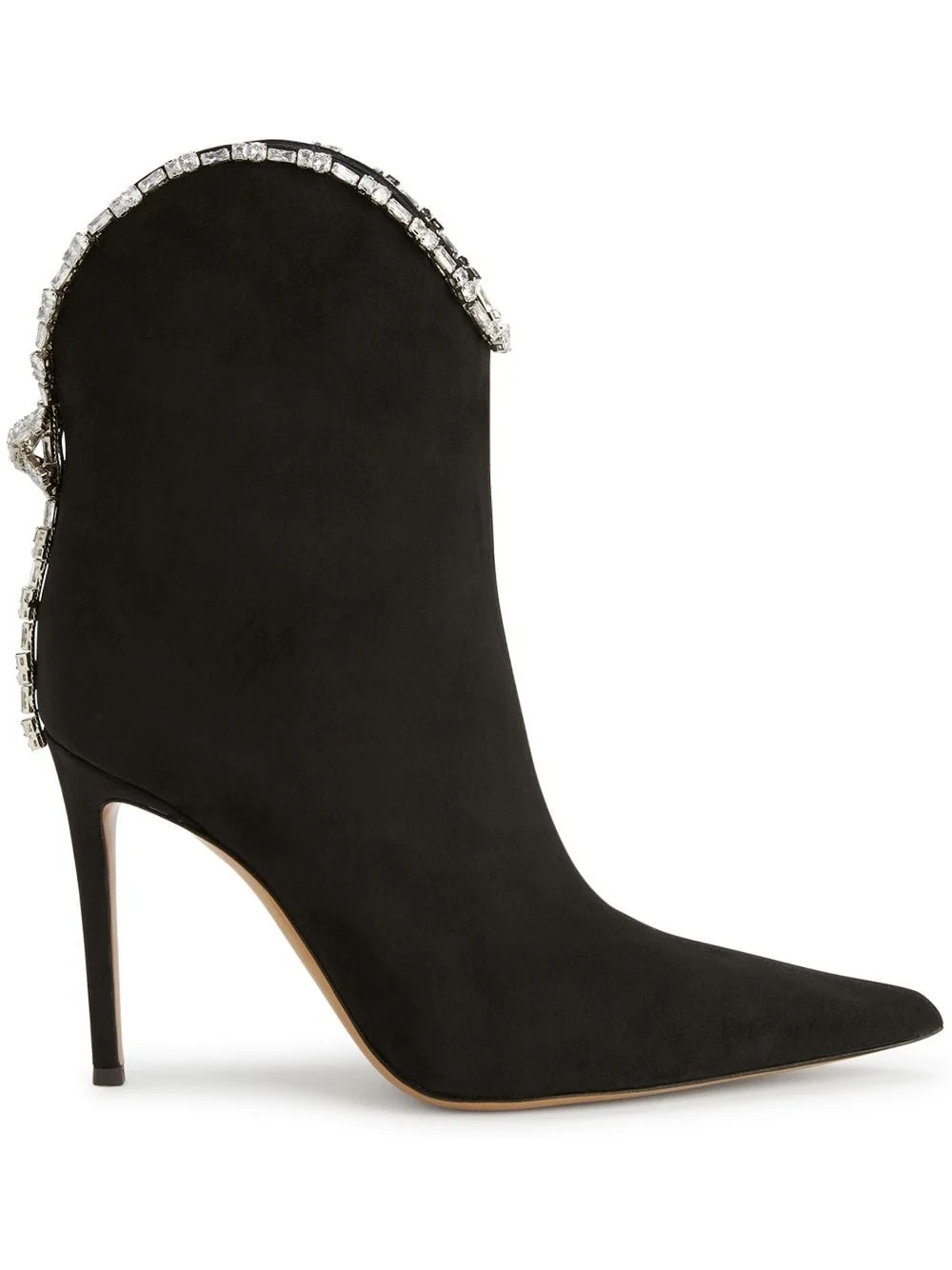 crystal-embellished detail 105mm boots Highlights - Black - Pointed toe - Crystal embellishment - 105mm high stiletto heel - Ankle-length - Branded leather insole - Leather outsole Made in Italy Composition Outer: Fabric 100% Sole: Leather 100% Leather 100%