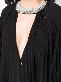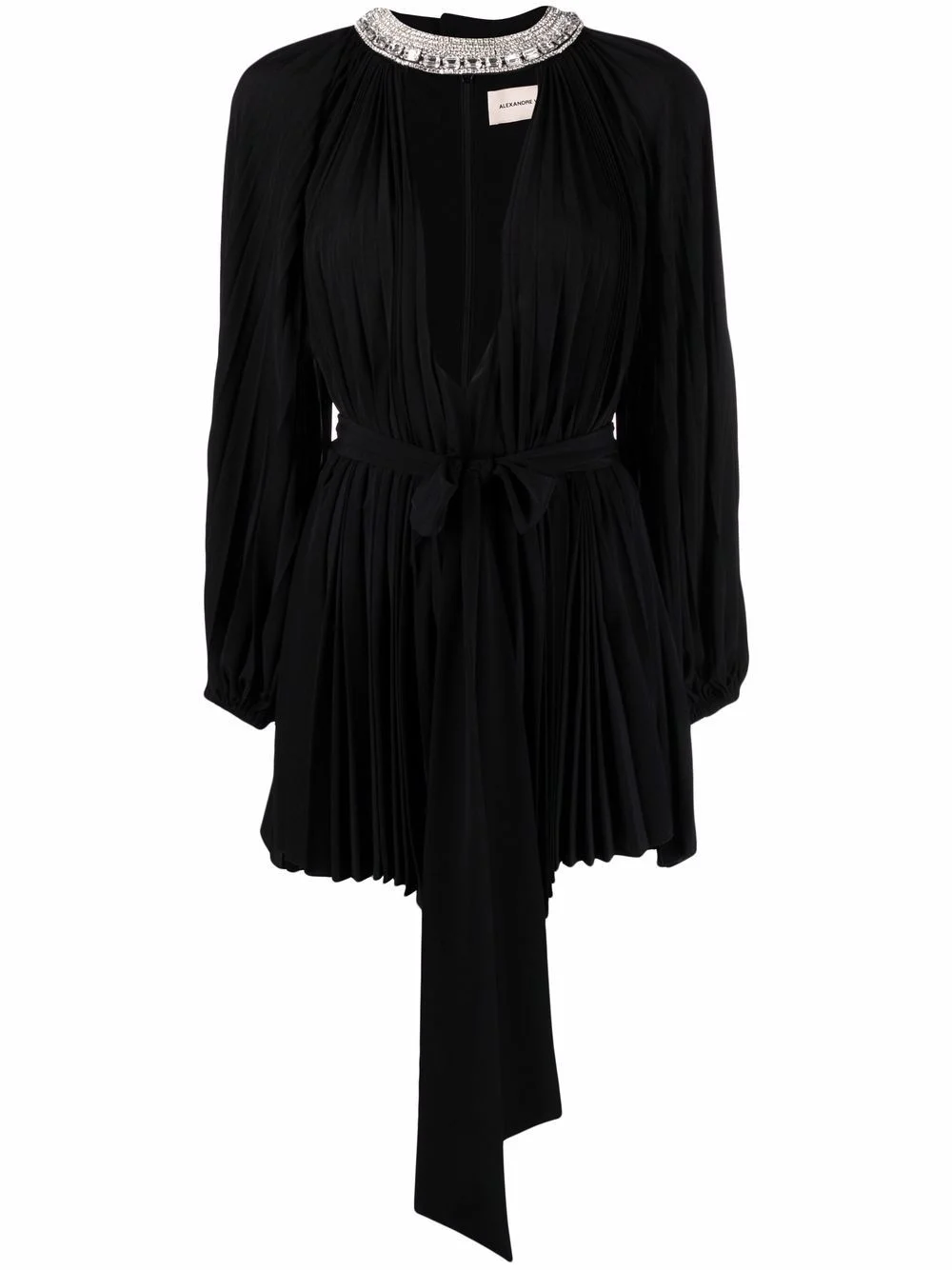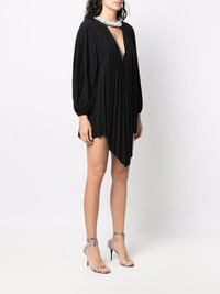 crystal-embellished pleated mini dress A true example of Alexandre Vauthier's bold spirit, this black mini dress boasts an accordion-pleated construction that allows a billowing silhouette. It is embellished with multicoloured crystals on the neckline and falls into an asymmetric hem. Imported Composition Polyester 100%, Brass 100%, glass 100% SIZE & FIT Model measurements Height 5 ft 10 in(1.79 m) Bust/Chest 33.07 in(84 cm) Hips 35.82 in(91 cm) Waist 24.01 in(61 cm) FittingInformation This piece fits true to size. We recommend you get your regular size Cut for a close fit Made with a mid-weight fabric