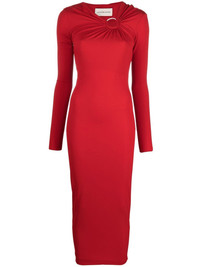 cut-out midi dress Punchy hues, exaggerated silhouettes and dramatic contours underpin Alexandre Vauthier's SS23 collection, as evidenced by this bright-red midi dress. Ruched detailing elevates the design, while a crystal-embellished brass ring lends a light-catching finish. Imported Composition glass 100%, Brass 100%, Viscose 92%, Elastane 8% SIZE & FIT Model measurements Height 5 ft 10 in(1.78 m) Bust/Chest 30.7 in(78 cm) Hips 34.64 in(88 cm) Waist 23.22 in(59 cm) FittingInformation This piece fits true to size. We recommend you get your regular size Designed for a close fit at the bust, waist and hips Made with a mid-weight stretch fabric Washing instructions Dry Clean Only