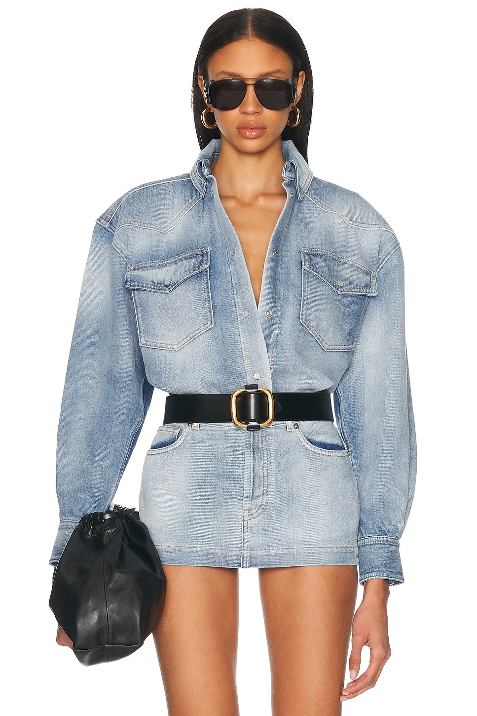 Details - 100% cotton - Dry clean only - Front button snap closure - Breast flap pockets - Drop-shoulder design - Buttoned cuffs - Denim fabric with intentional fading - Item not sold as a set - Made in Italy - Our Style No. ALEF-WS80 - Manufacturer Style No. 252SH1601