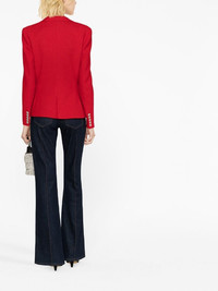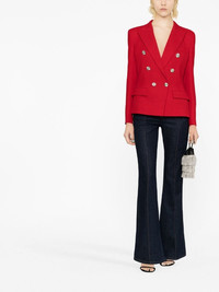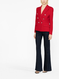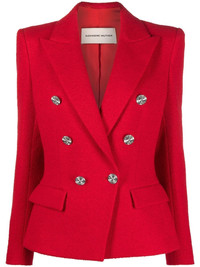 double-breasted blazer daring red cotton blend notched lapels double-breasted button fastening long sleeves two front flap pockets straight hem Imported Composition Outer: Cotton 93%, Polyamide 7% Lining: Polyester 100% SIZE & FIT Model measurements Height 5 ft 10 in(1.79 m) Bust/Chest 31.49 in(80 cm) Hips 35.03 in(89 cm) Waist 23.62 in(60 cm) FittingInformation This piece fits true to size. We recommend you get your regular size Cut for a slim fit Made with a mid-weight non-stretch fabric Washing instructions Dry Clean Only