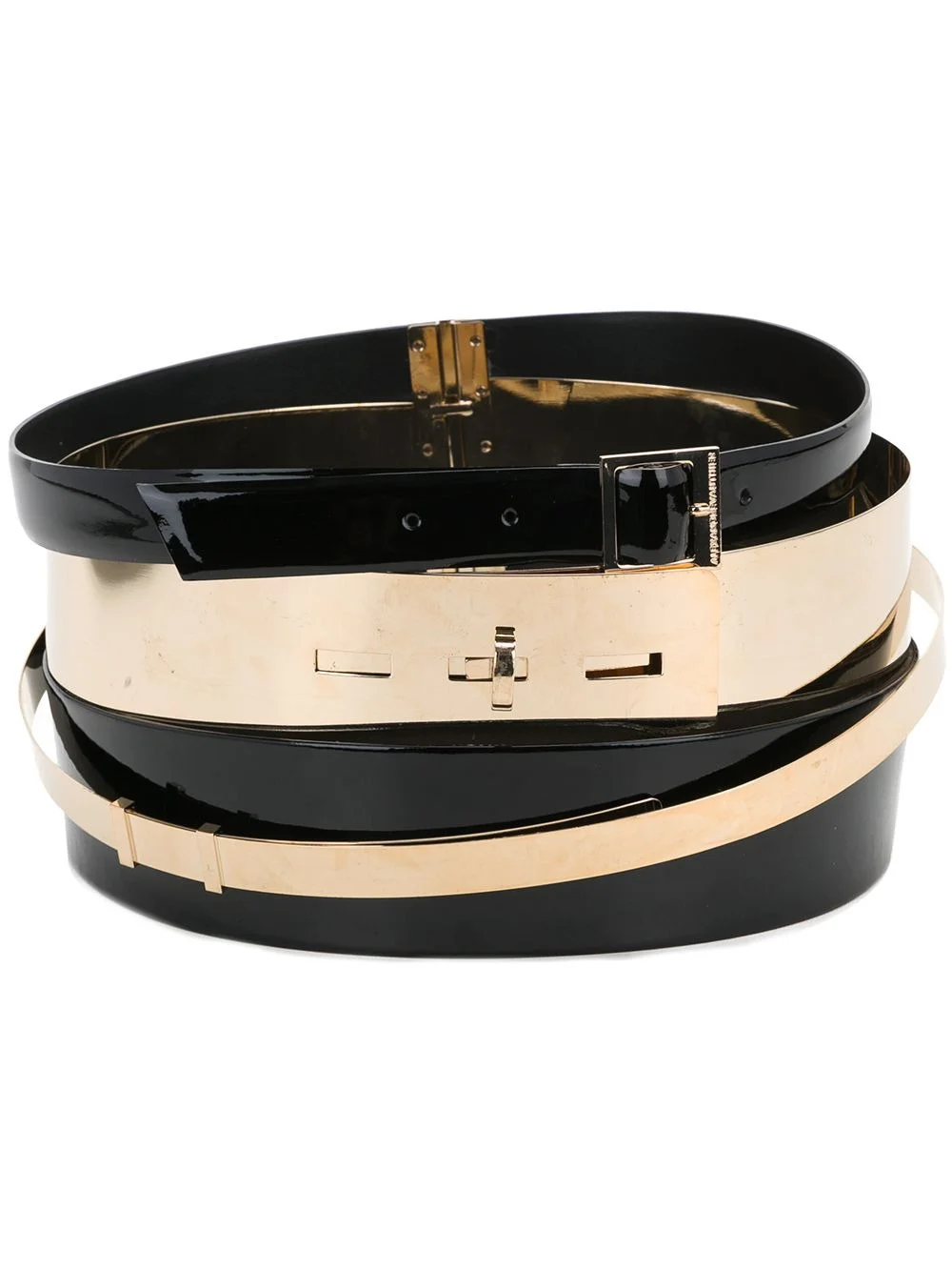 multi layer belt Black and golden calfskin multi layer belt from Alexandre Vauthier. Made in France Composition Outer: Calf Leather 100% SIZE & FIT Measurement WIDTH 4.72 in(12 cm) CIRCUMFERENCE 26.37 in(67 cm)