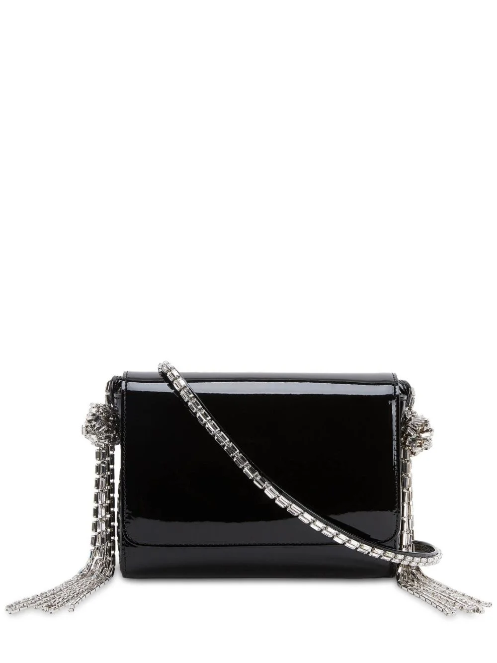 patent-finish clutch bag Highlights - Black - Foldover top with magnetic fastening - Chain-link shoulder strap Made in Italy Composition Inner: Fabric 100% Outer: Polyurethane 100%
