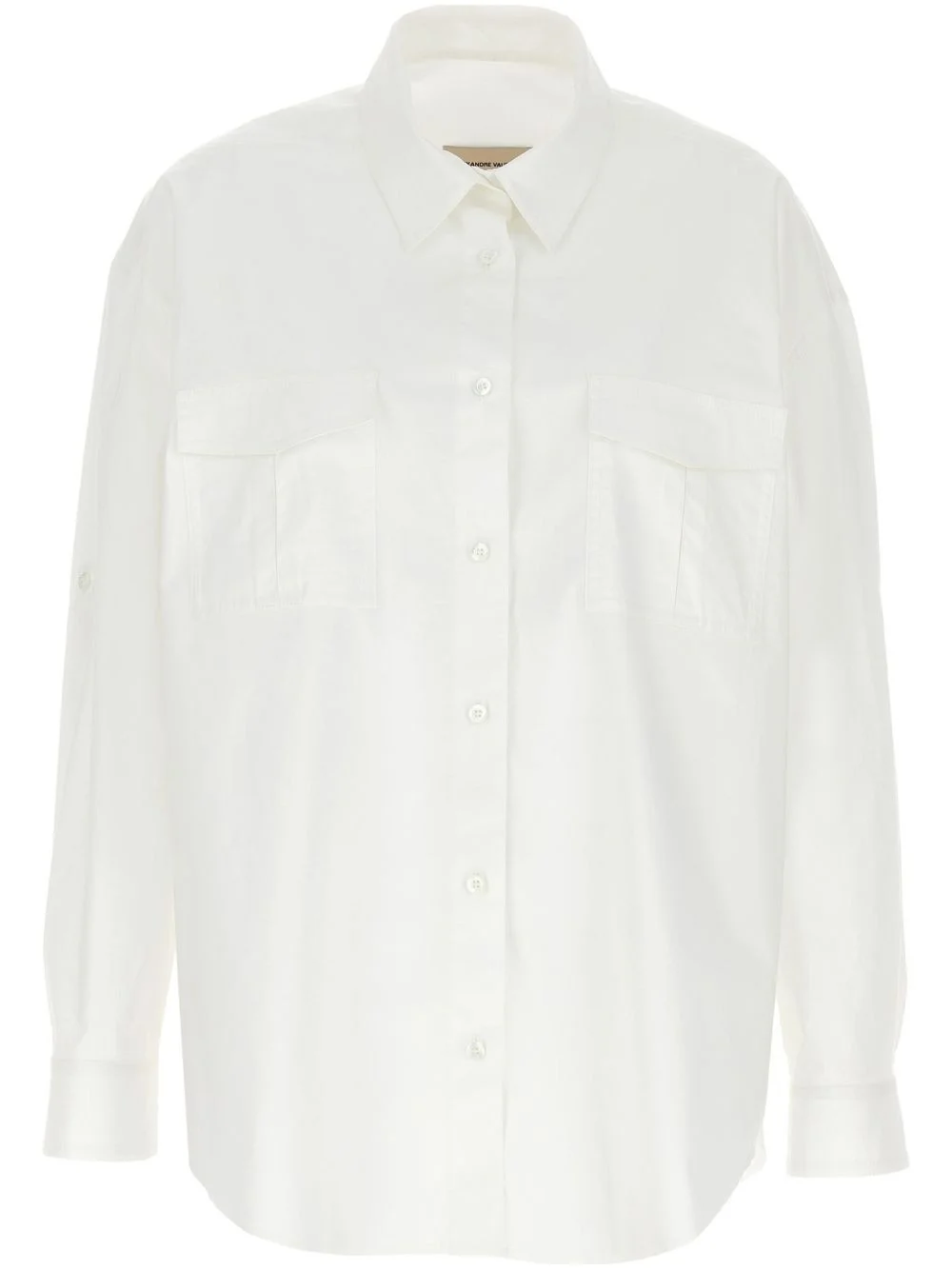 button-up shirt Highlights - White - Front button fastening - Classic collar - Buttoned cuffs - Curved hem Imported Composition Cotton 97%, Elastane 3%