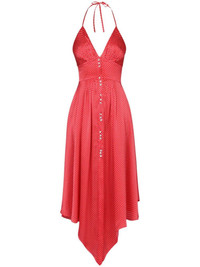 polka-dot print halterneck midi dress Highlights - Bright red - Cotton - Polka dot print - Halterneck tie fastening - V-neck - Backless - Rear zip fastening - Asymmetric hem - A-line Imported Composition Cotton 100%