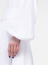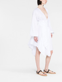 ruched-detail long-sleeve midi dress white cotton rear tie fastening ruched detailing V-neck long sleeves asymmetric hem Made in France Composition Cotton 100% SIZE & FIT Model measurements Height 5 ft 12 in(1.82 m) Bust/Chest 34.25 in(87 cm) Hips 37.79 in(96 cm) Waist 25.19 in(64 cm) FittingInformation This piece fits true to size. We recommend you get your regular size Cut for a loose fit. Comes with an adjustable belt for a flexible fit at the waist Made with a mid-weight non-stretch fabric Washing instructions Dry Clean Only