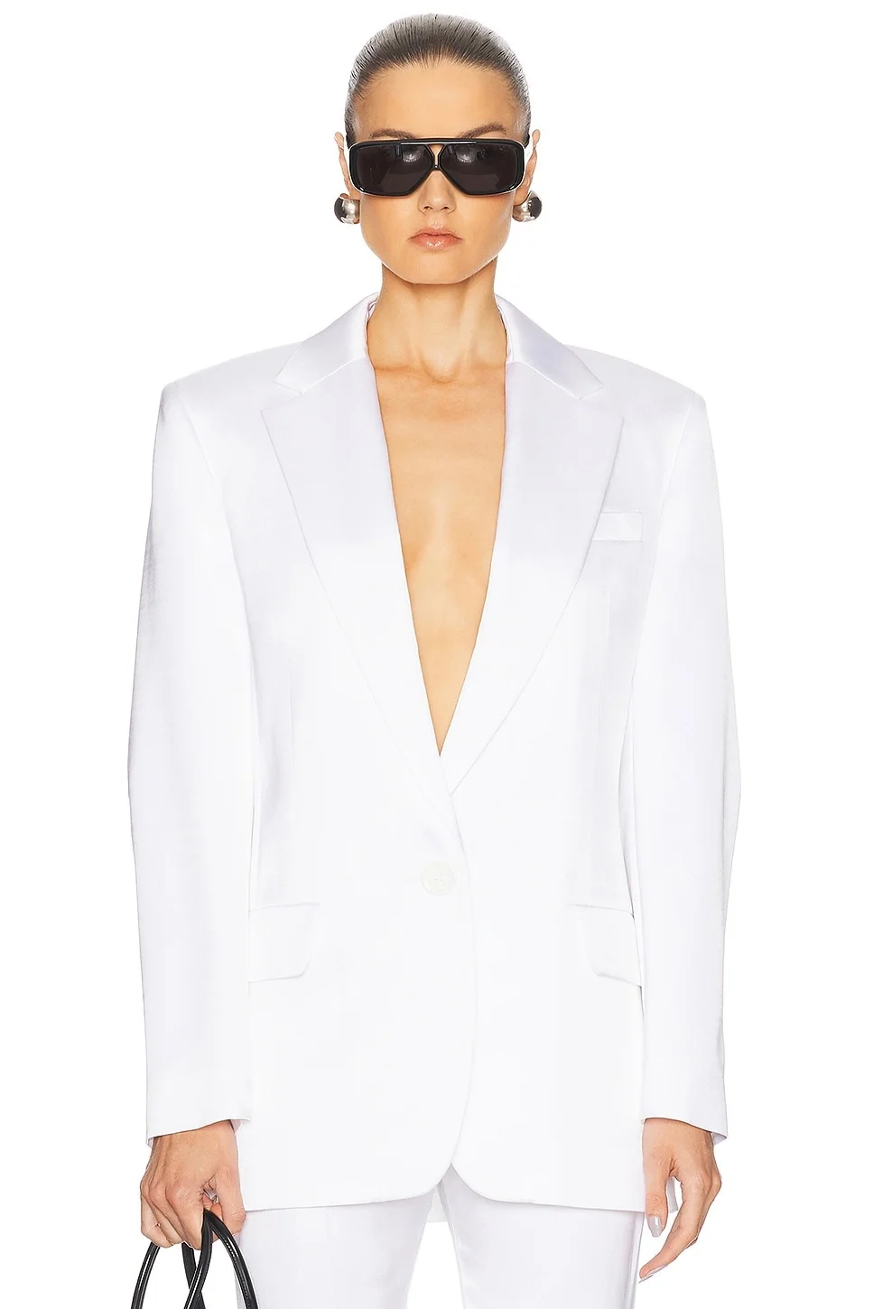 Details - Self: 100% viscose - Lining: 57% viscose, 43% polyester - Dry clean only - Singular front button closure - Padding at shoulders - Breast seam pocket - Front flap pockets - Buttoned cuffs - Satin crepe fabric - Item not sold as a set - Made in Slovak Republic - Our Style No. ALEF-WO52 - Manufacturer Style No. 252JA3100