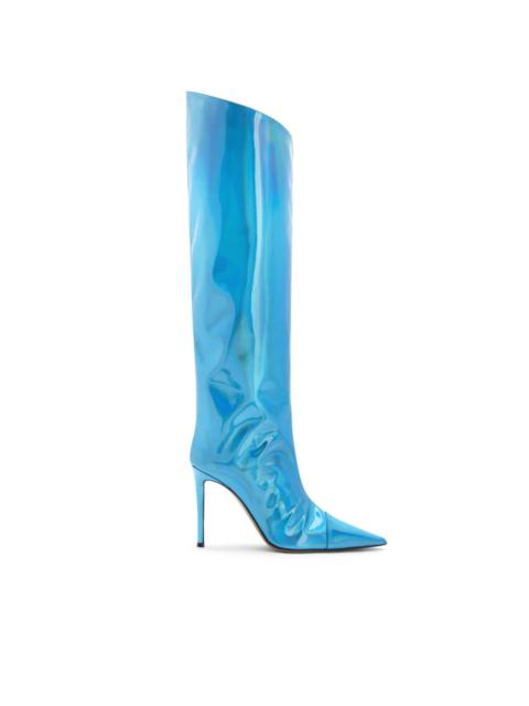 stiletto-heel velvet boots rose pink crushed velvet/calf leather pointed toe side zip fastening below-knee length high stiletto heel 105mm Made in Italy Composition Outer: Velvet 100% Sole: Leather 100% Lining: Leather 100% SIZE & FIT Measurement CIRCUMFERENCE 15.74 in(40 cm) HEEL 4.13 in(10.5 cm) HEIGHT 18.11 in(46 cm)