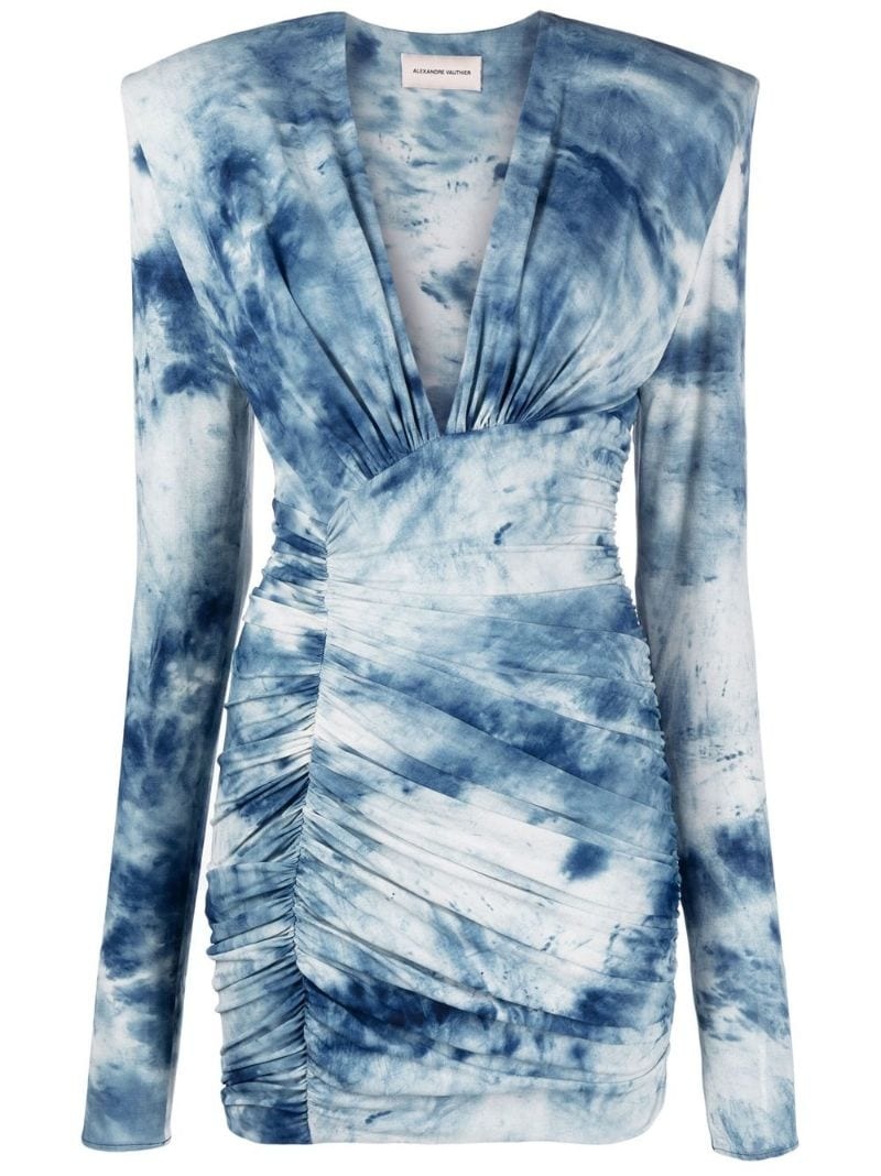 tie-dye print ruched mini dress