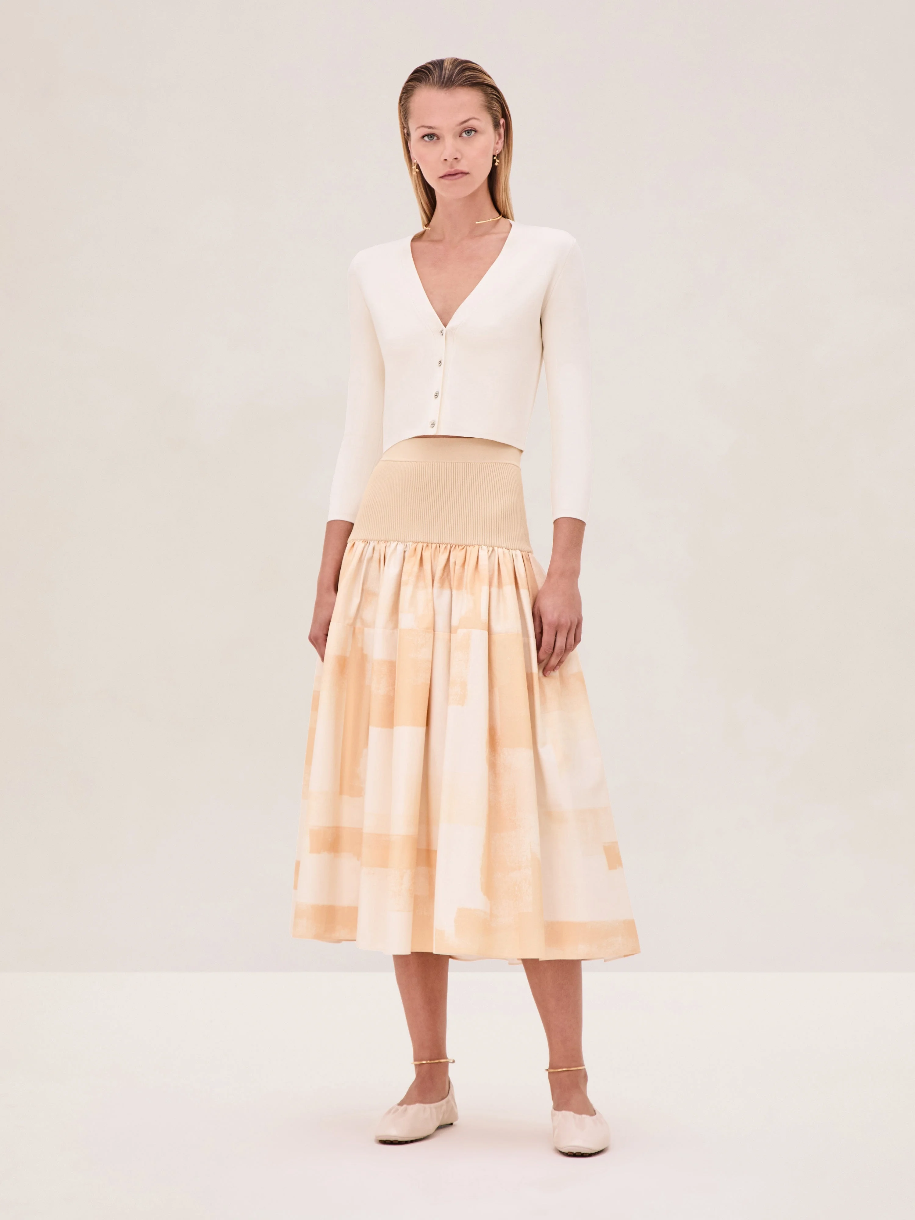 The Aldeo Cardigan is a cropped cardigan featuring a V-neckline and a button-down front. Model Measurements Height: 5'10" Bust: 34B Waist: 25" Hips: 35” Model wears an XS