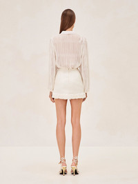 The Inet Skirt is sleek, modern, and undeniably chic. Its minimalist design is enhanced with a form-fitting silhouette that celebrates the contours of the body, while the luxurious fabric speaks to an understated elegance. Perfect for pairing with the Ulla-Marie Top for a harmonious blend of texture and sophistication. Model Measurements Height: 5'10" Bust: 34B Waist: 25" Hips: 35” Model wears an XS