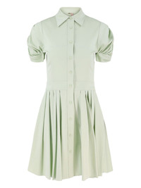 April puffed-sleeve pleated mini dress Highlights - Light green - Pleated skirt - Button fastening - Collared neckline - Short sleeves - Puffed sleeves Imported Composition Cotton 100% Washing instructions Read Manufacturer Guidelines