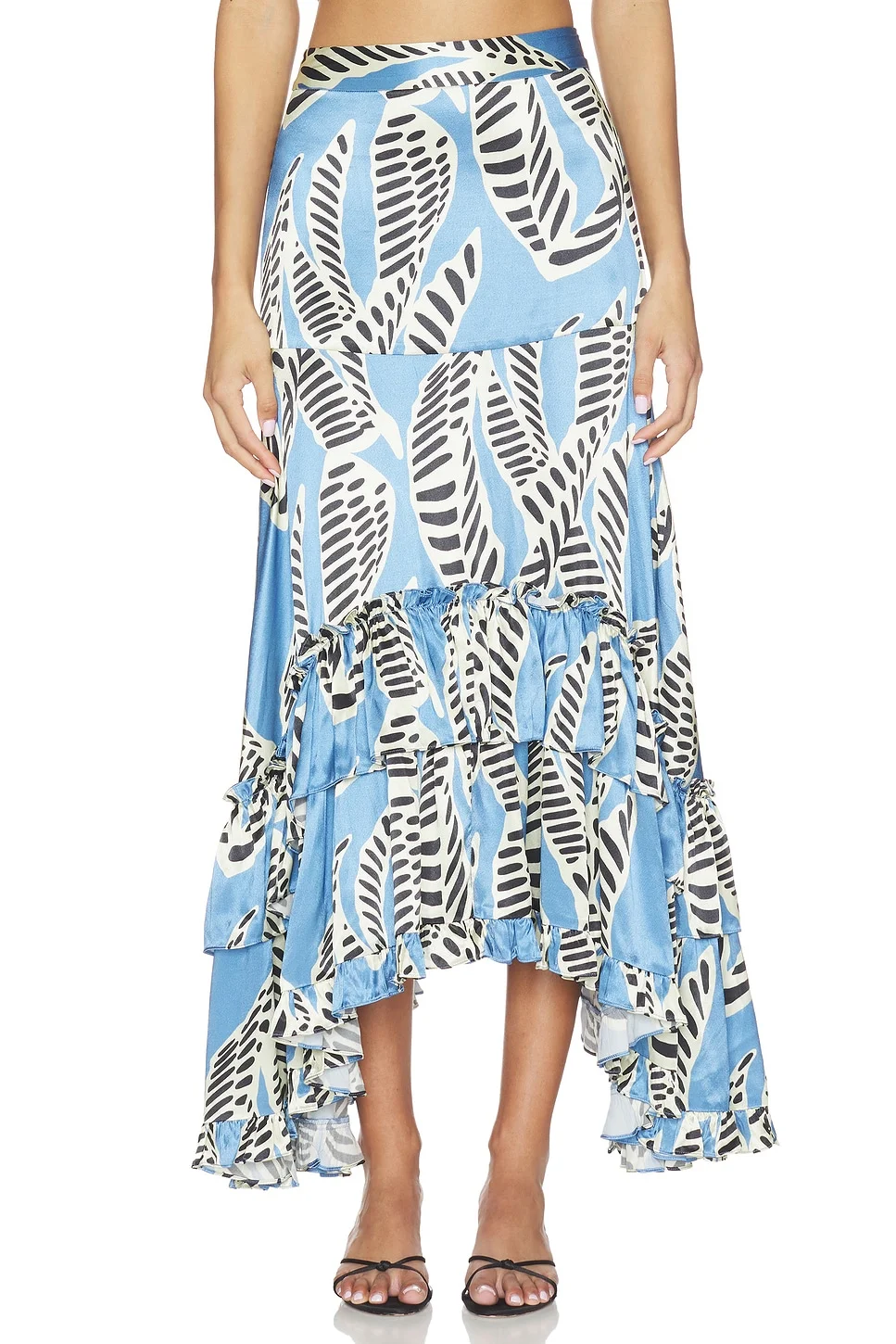 - Self: 58% viscose 42% rayon Lining: 100% polyester - Made in Chima - Dry clean only - Partially lined - Hiden side zip closure - Heavyweight satin fabric - Asymmetrcial hem - Waist to shortest hem measures approx 33" and to longest hem approx 43" in length - Revolve Style No. AXIS-WQ172 - Manufacturer Style No. A1260908-1043