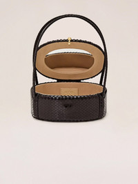 The Constance is a petite oval, top-handle handbag crafted featuring a lock closure. Designed with both style and functionality in mind, it also includes a built-in mirror inside for effortless touch-ups on the go. Details 8" L x 3" H x 5" D handle drop of 8.25" 100% Cow Leather