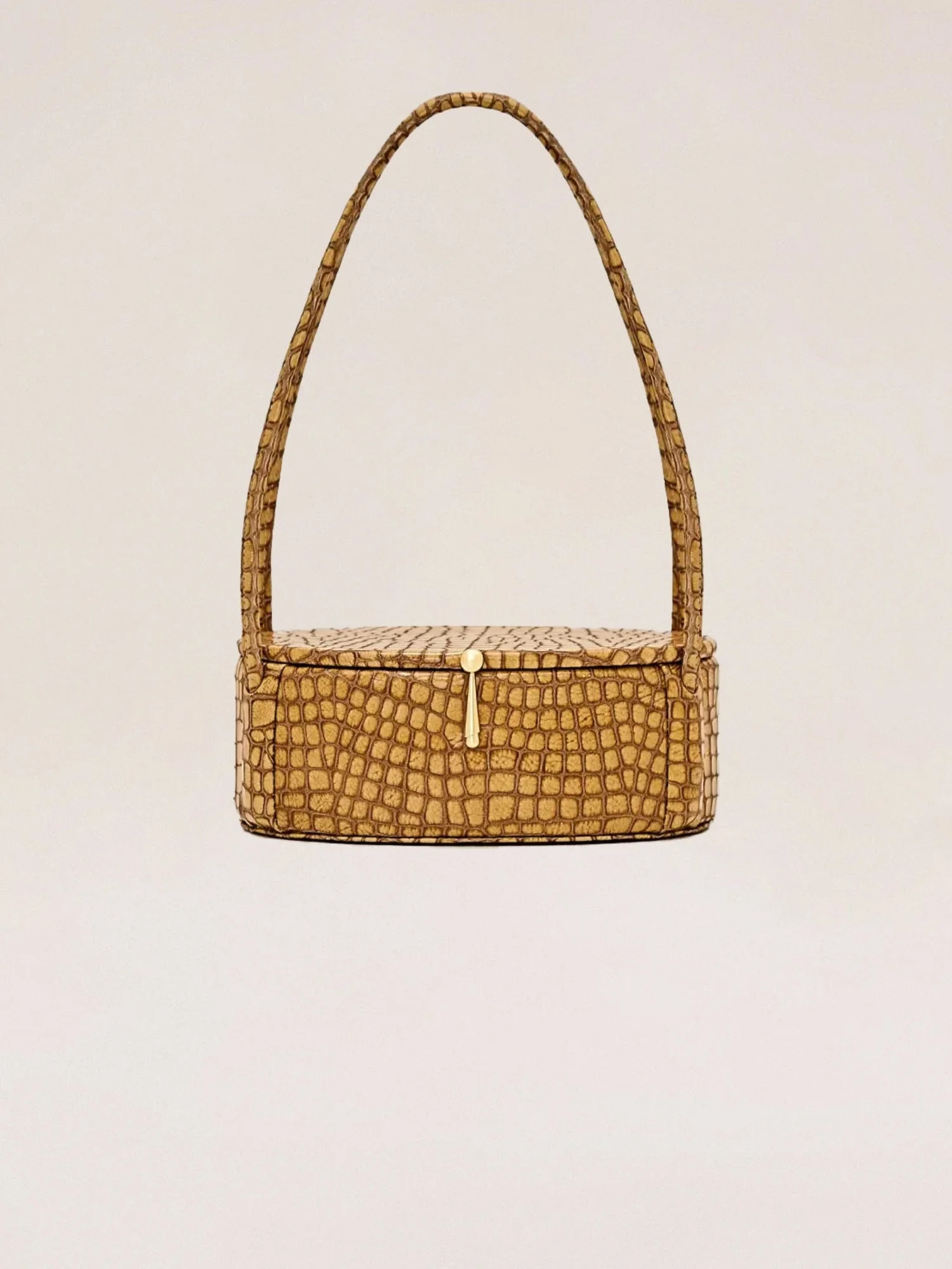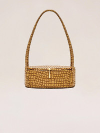 The Constance is a petite oval, top-handle handbag crafted featuring a lock closure. Designed with both style and functionality in mind, it also includes a built-in mirror inside for effortless touch-ups on the go. Model Measurements Height: 5'10" Bust: 34B Waist: 25" Hips: 35” Model wears an XS