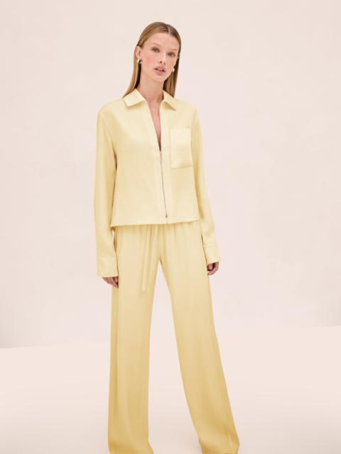 The Damian Pant is a drawstring wide-leg silhouette, paired with the Rowen Top. Model Measurements Height: 5'10" Bust: 34B Waist: 25" Hips: 35” Model wears an XS