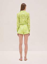 The Izmir Short is a t extured high-waisted jacquard shorts featuring a corded piping waistband, paired with the Yael Top. Model Measurements Height: 5'10" Bust: 34B Waist: 25" Hips: 35” Model wears an XS