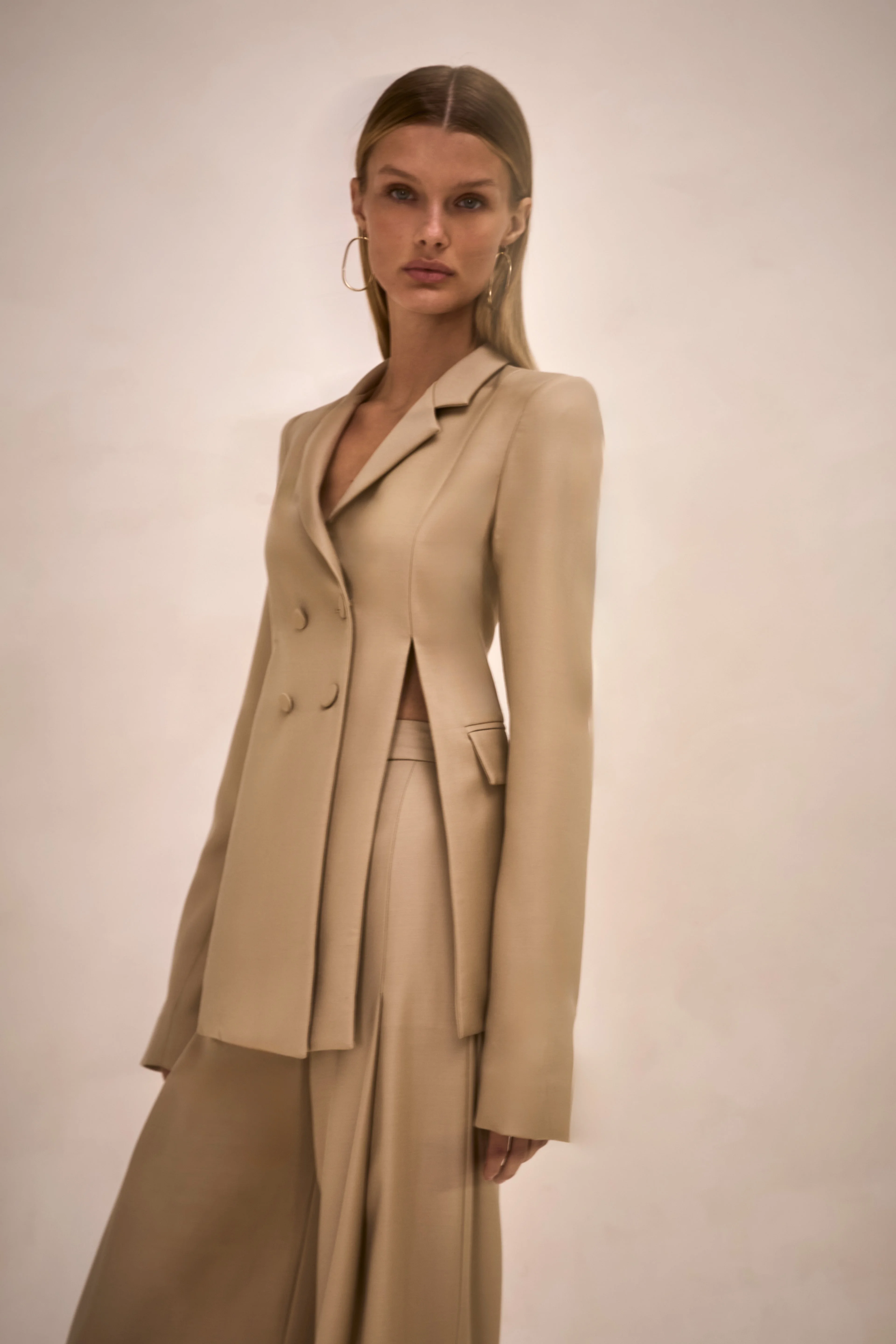 The Jude Pant is a wide-leg trouser featuring a tailored waistband and pressed front seams. Model Measurements Height: 5'10" Bust: 34B Waist: 25" Hips: 35” Model wears an XS