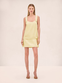 The June Dress is a sleeveless mini silhouette featuring buttoned strap and waist detailing. Read more Model Measurements Height: 5'10" Bust: 34B Waist: 25" Hips: 35” Model wears an XS Read more