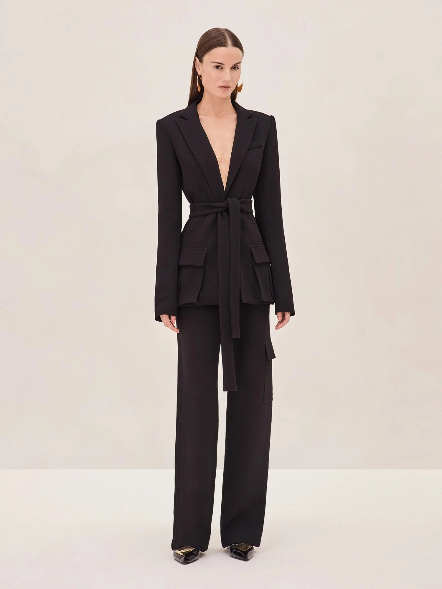 Introducing the Justen Pants. These wide-leg trousers offer a sophisticated silhouette that flows effortlessly, while the tailored design ensures a flattering fit. The standout feature is the utility-inspired pockets, adding a contemporary twist to this timeless style. Pair the Justen Pants with the Bartan Jacket for a cohesive and powerful look that’s perfect for any occasion. Model wears XS Model Measurements Height: 5'10" Bust: 34B Waist: 25" Hips: 35”