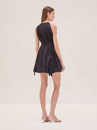 The Lidiane Dress is a mini dress with a cinched waist and delicate tie detailing. Model Measurements Height: 5'10" Bust: 34B Waist: 25" Hips: 35” Model wears an XS