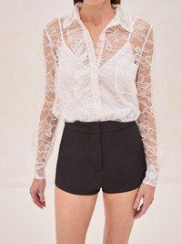 The Luzia sheer lace blouse can be styled with or without the slip, depending on how bold you're feeling. Perfect for layering or as a standout on its own, Luzia's intricate details and versatile design make it a must-have. Whether you’re pairing it with high-waisted shorts, sleek trousers, or even a statement skirt, this top instantly elevates any look. Easy, chic, and undeniably stylish—Luzia is ready for whatever vibe you're going for. Model Measurements Height: 5'10" Bust: 34B Waist: 25" Hips: 35” Model wears an XS