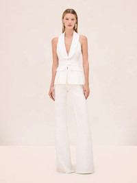 The Micoli Top is a structured vest featuring front flap pockets and a deep collar, paired with the Samwell Pant. Model Measurements Height: 5'10" Bust: 34B Waist: 25" Hips: 35” Model wears an XS