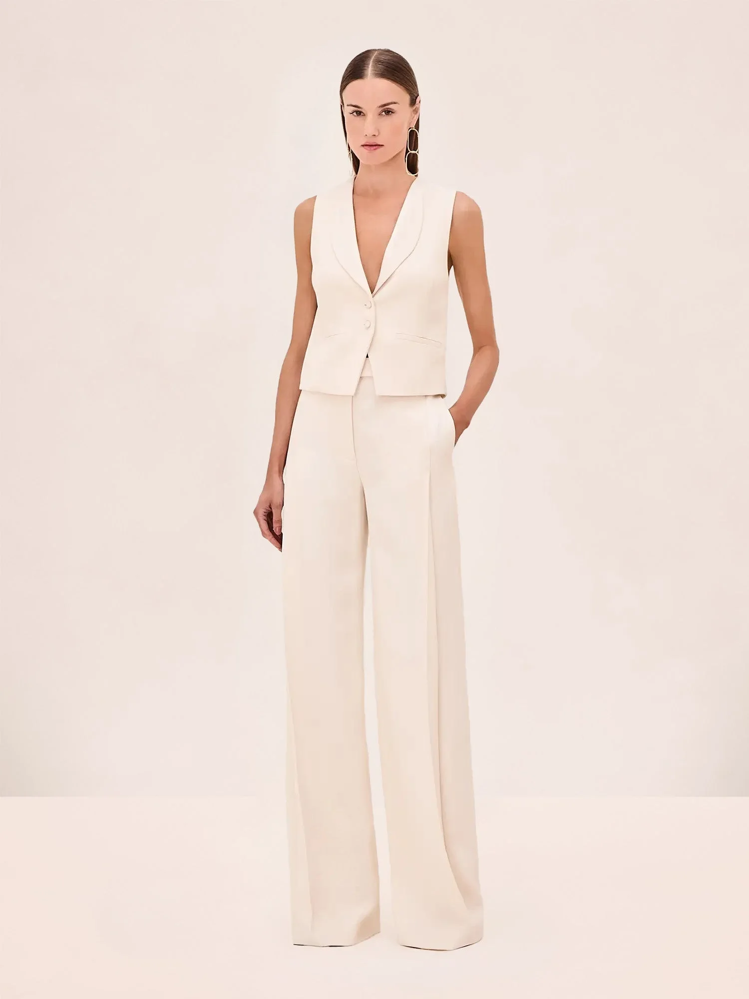 The Oliver Vest is a tailored sleeveless blazer featuring a deep notched lapel, button front closure, and welt pocket detailing, paired with the Jude Pant. Model Measurements Height: 5'10" Bust: 34B Waist: 25" Hips: 35” Model wears an XS