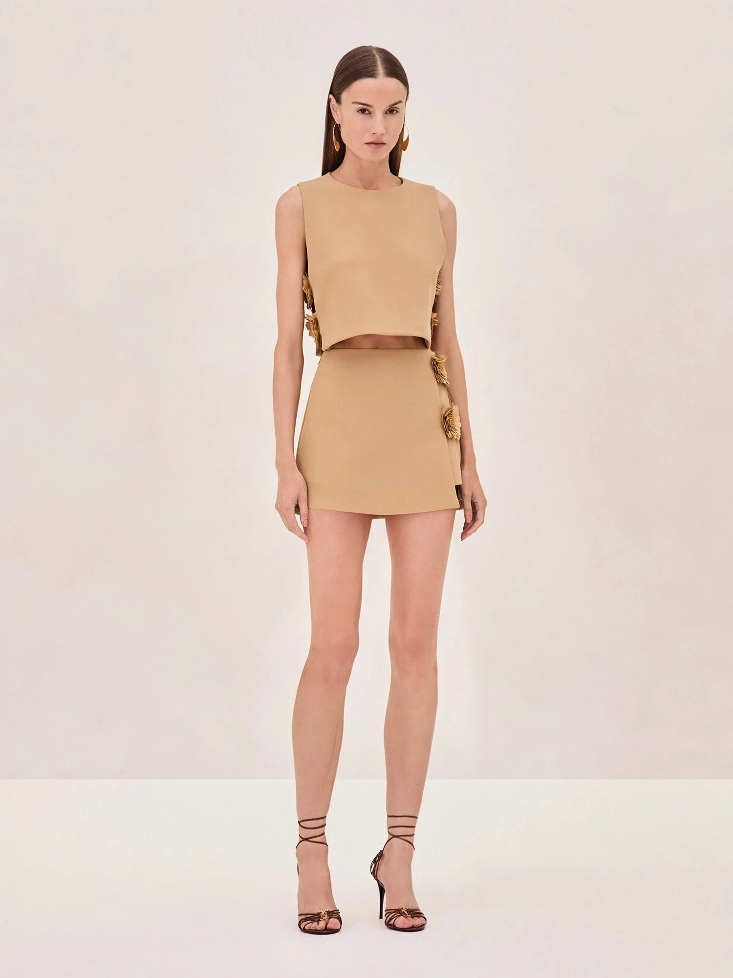 Introducing the Raylin Top. With its clean lines and modern silhouette, this top is elevated by the intricate floral appliques along the sides, adding a delicate, feminine touch. The simple yet refined design makes it a versatile piece that effortlessly transitions from day to night. For a perfectly coordinated look, pair the Raylin Top with the Susie Skirt. Model Measurements Height: 5'10" Bust: 34B Waist: 25" Hips: 35” Model wears an XS
