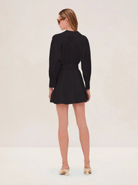 The River Dress is an effortlessly chic mini, designed with a plunging neckline and a gathered waist detail that creates a flattering silhouette. With its flared hem and long sleeves, this versatile piece transitions seamlessly from day to night. Model Measurements Height: 5'10" Bust: 34B Waist: 25" Hips: 35” Model wears an XS
