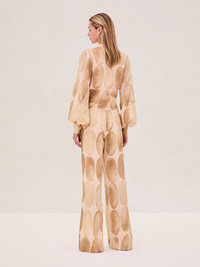 The Sarif Pant is a relaxed-fit pant with a back zip closure, paired with the Desai Top. Model Measurements Height: 5'10" Bust: 34B Waist: 25" Hips: 35” Model wears an XS
