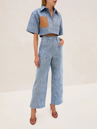 The Trevor Pant features a high-waisted fit, wide-leg silhouette, and subtle pocket details. These pants offer a polished yet relaxed look. Pair them with the Brook Top for a coordinated look. Model Measurements Height: 5'11" Bust: 32 Waist: 24" Hips: 34” Model wears XS.