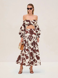 The Trisha Top is designed with an off-the-shoulder neckline, removable puff sleeves, and a chic twisted front detail. Pair it back with the Napoli Skirt for a stunning, coordinated look that’s ready for any event. Model Measurements Height: 5'10" Bust: 34B Waist: 25" Hips: 35” Model wears an XS