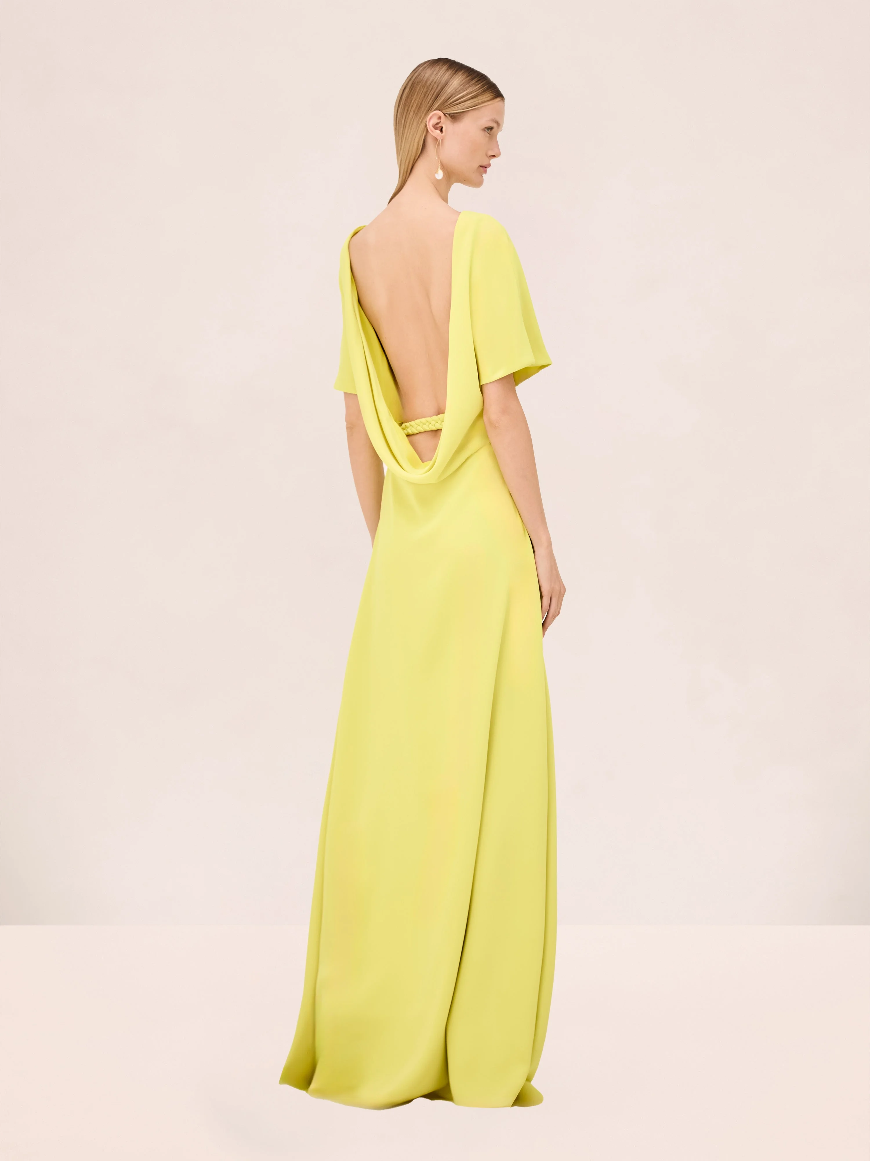 The Vale Dress is a floor-length silhouette with a braided rope belt and relaxed short sleeves. Model Measurements Height: 5'10" Bust: 34B Waist: 25" Hips: 35” Model wears an XS