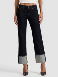 We're loving low-rises right now and our Abilene Jean really scratches that itch. It includes cuffed hems in a skinny leg fit and the dreamiest denim you can imagine. These are going to be your go-to's. DETAILS - Skinny jean - Low rise - Raw hem cuffs - Belt loops - Front button and zipper closure - 94% cotton, 5% elastomultiester, 1% elastane - Turn inside out and machine wash on cold with like colors - Imported FIT - Model is 5'10" and wearing a size 24 - Front rise: 8 3/4" - Inseam: 29" - Fits true to size, take your normal size