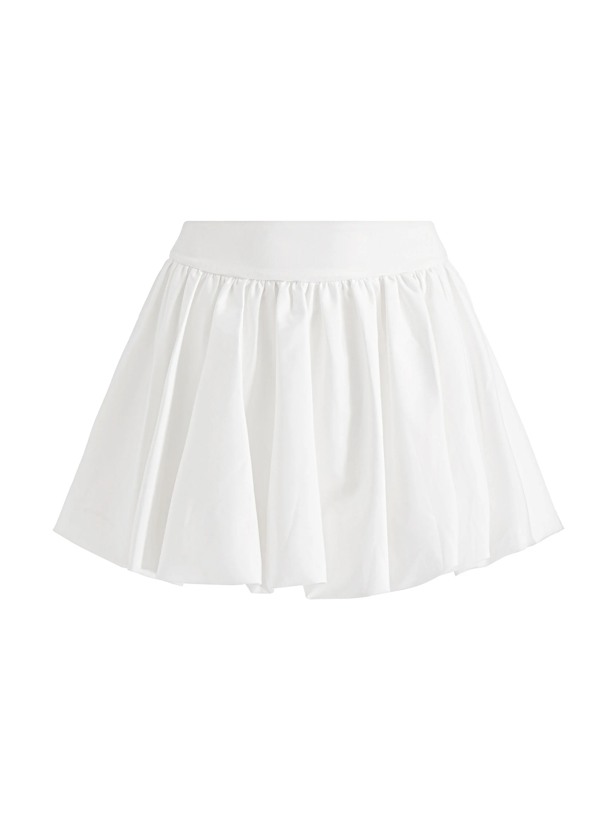 Playful, preppy, and undeniably fun-the Agnes skort brings a flirty twist to summer tailoring. Cut in lightweight stretch twill with a bubble hem and built-in shorts, this mini is made to move with you. A back zip closure keeps the fit clean, while the shape delivers a feminine, fresh silhouette. Pair it with a polished blouse or lean into prep with a cardigan and sneakers. DETAILS - Mini skort - Bubble hem - Lightweight stretch twill - Short lining with skirt overlay - Back zipper closure - 65% recycled polyester, 32% viscose, 3% elastane - Dry clean only - Imported FIT - Model is 5'10" and wearing a size 0 - Skirt length: 12 1/2" - Fits true to size, take your normal size