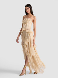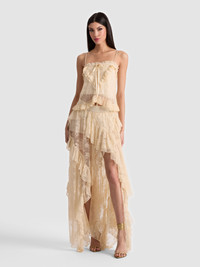 A little bit flirty, a little bit old-world romance. The Alessia top is crafted in ruffled lace with woven ribbon trim and dainty spaghetti straps, giving serious vintage vibes. A structured bodice and silicone grip keep everything in place, while a back zip makes slipping it on a breeze. Pair with denim for a moment that feels straight out of a summer love story. DETAILS - Lace crop top - Woven ribbon - Spaghetti straps - Ruffled - Lined - Inner non-slip silicone grip - Back zipper closure - 100% nylon - Dry clean only - Imported FIT - Model is 5'10" and wearing a size 0 - Length from the shoulder: 20" - Fits true to size, take your normal size