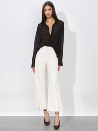 Every woman needs a perfect-fitting pair of pants. And why not in ultra luxe vegan leather? These Alexander trousers are the wardrobe hero you’re missing. They’re cut into a slim, straight leg that ends at the ankle to flatter virtually every body type. Just try them on and you’ll see the magic. DETAILS - Slim straight trouser - Vegan leather - Ankle length - High rise - Hook and zipper front closure - Belt loops - 100% polyurethane - Dry clean only - Imported FIT - Model is wearing a size 2 and her measurements are 5’10”, 32” bust, 23” waist, 34” hips - Front rise: 11" - Inseam: 28" - Fits true to size, take your normal size