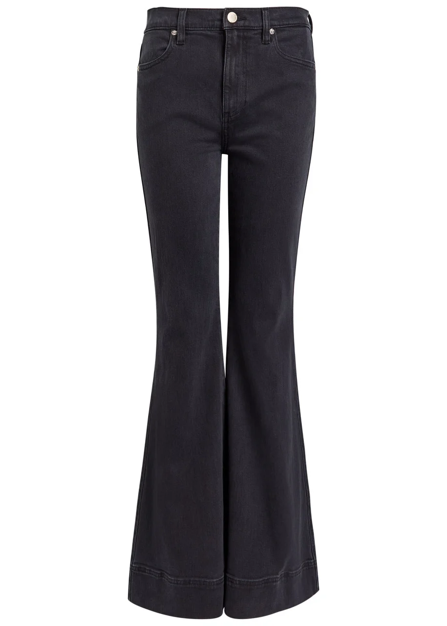 Info & Care Alice + Olivia stretch-denim jeans High-rise fit, bell-bottom cut, belt loops, four pockets, embroidered designer tab at back Concealed button and zip fastening at front 94% cotton, 5% elastomultiester, 1% elastane Machine wash cold inside out to avoid colour transfer Size & Fit Front rise: 10.5 inches/ 26.5cm Inside leg length: 33 inches/ 83.5cm Midweight Model is 5'10"/ 178cm and wears a size;W27