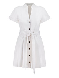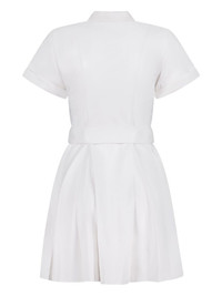 Lucy button-front pleated mini dress Highlights - Off-white - Pleated skirt - Short sleeves - Button front - Belted waist - V-neckline Imported Composition Polyurethane 100% Washing instructions Dry Clean Only