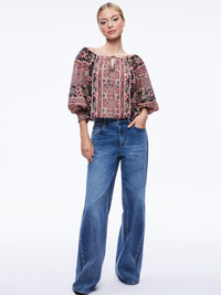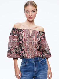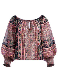 We're all about happy tops this season and that's exactly what this top is: You can't help but smile when you see it. It includes a chic off the shoulder neckline and special details that are destined to make it your new favorite. DETAILS - Blouse - Off shoulder - Blouson sleeve - Elastic neckline - Tie front - Smocked cuffs - Pull on - Total length: 21” - 70% cotton, 30% silk - Fits true to size, take your normal size - Model is wearing a size Small and her measurements are 5’10”, 34” bust, 24” waist, 34” hips - Dry clean only - Imported