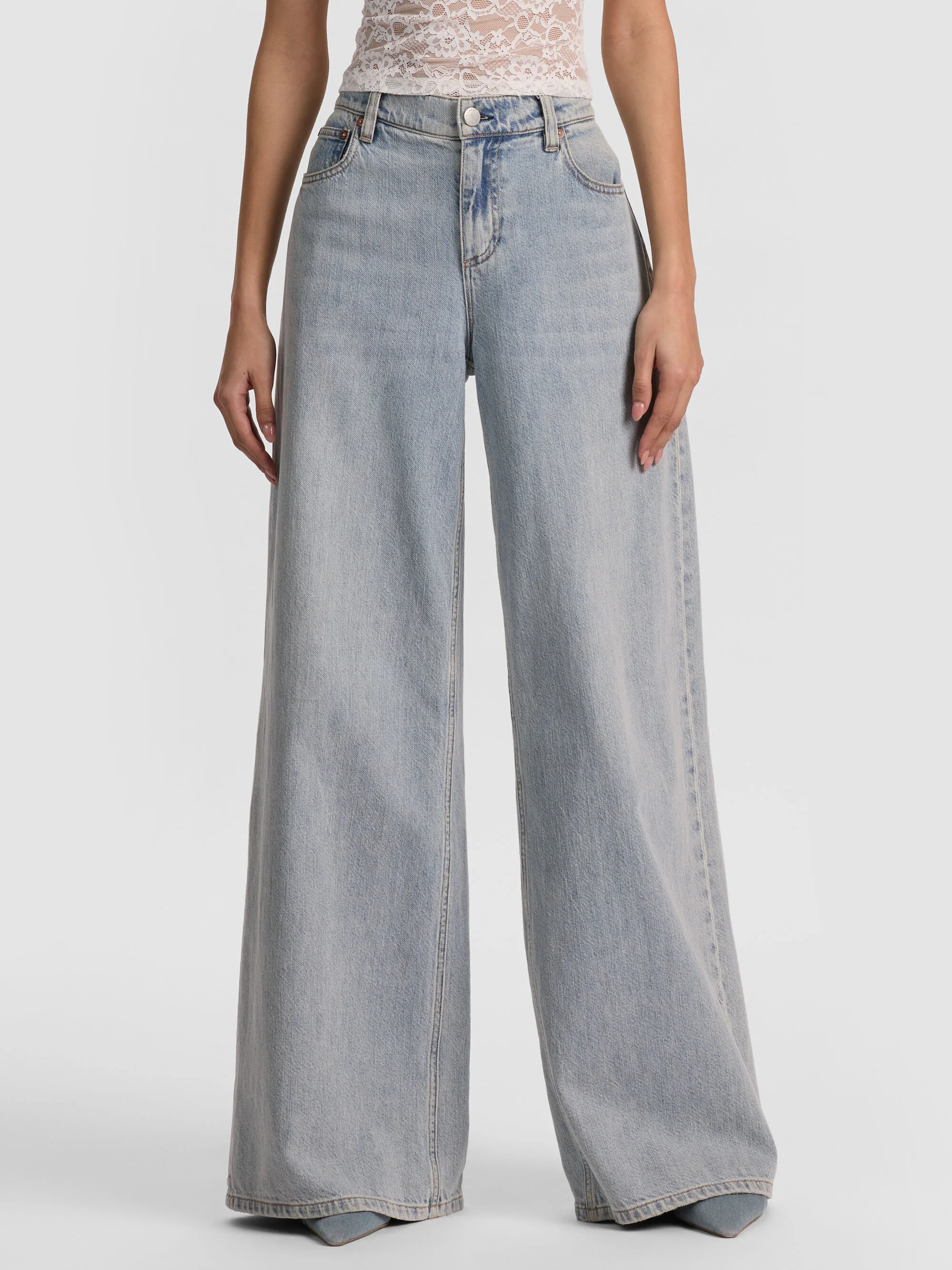 Introducing: The Amazing Jean. This low rise baggy jean perfects the wide leg silhouette with 100% cotton that drapes just right and feels even better with every wear. Belt loops and a classic button-zip closure keep it timeless. Wear it slouchy, style it sleek--either way, you'll look AMAZING. DETAILS - Wide leg jean - Low rise - Relaxed fit - Belt loops - Front button and zipper closure - 100% cotton - Turn inside out and machine wash on cold with like colors - Imported FIT - Model is 5'10" and wearing a size 24 - Front rise: 9 1/8" - Inseam: 34 1/2" - Fits true to size, take your normal size