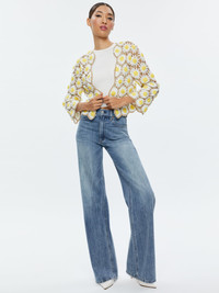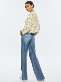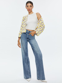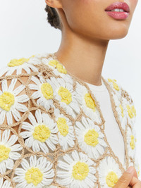 This playful cardigan is more than just a cute layer, it lends so much personality to your look. We adore the vintage vibes and the slightly cropped construction. DETAILS - Crocheted cardigan - Cropped fit - Crew neck - Daisy embellishments - 3/4 length sleeves - 54% cotton, 38% acrylic, 8% wool - Dry clean only - Imported FIT - Model is wearing a size Small and her measurements are 5’10”, 32” bust, 23” waist, 34” hips - Length from the shoulder: 18 1/2" - Fits true to size, take your normal size