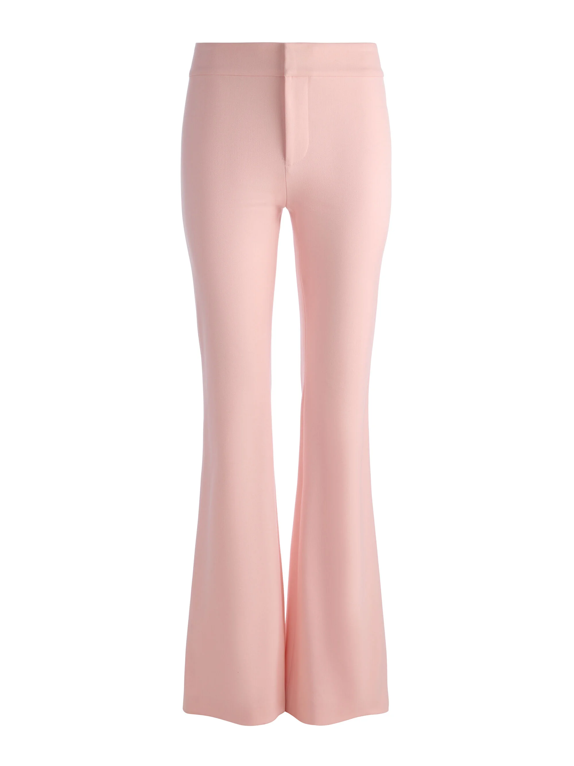 A modern take on classic tailoring. The Andrew slim pants are cut from luxe twill sateen with a high rise for a polished, elongated silhouette. They mean business--but they also know how to have a good time. Pair with a blazer for the office, and swap for a sheer blouse on a night out. These pink pants will turn heads either way. DETAILS - Bootcut pant - Twill sateen - Slim fit - Mid rise - Hidden front hook and zipper closure - 64% polyester, 32% viscose, 4% elastane - Dry clean only - Imported FIT - Model is 5'10" and wearing a size 0 - Front rise: 9 3/4" - Inseam: 34 3/4" - Fits true to size, take your normal size