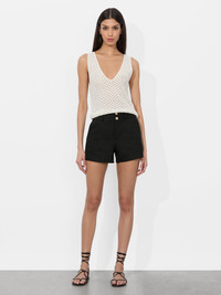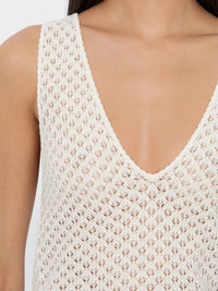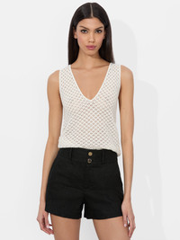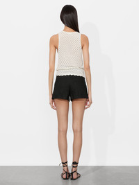 Easygoing yet effortlessly chic, our Annalise Tank is an essential. Made from a cashmere-linen blend woven into an open pointelle stitch, it offers a breezy, textured feel that’s both relaxed and refined. The delicate scalloped hem adds a touch of femininity, while the fitted silhouette makes it perfect for layering or wearing solo. Pair it with denim for a laidback look or style it with a flowy skirt for effortless elegance. DETAILS - Knit tank - Pointelle stitch - 49% linen, 48% lyocell, 3% cashmere - Dry clean only - Imported FIT - Model is 5'10" and wearing a size XS - Length from the shoulder: 21" - Fits true to size, take your normal size